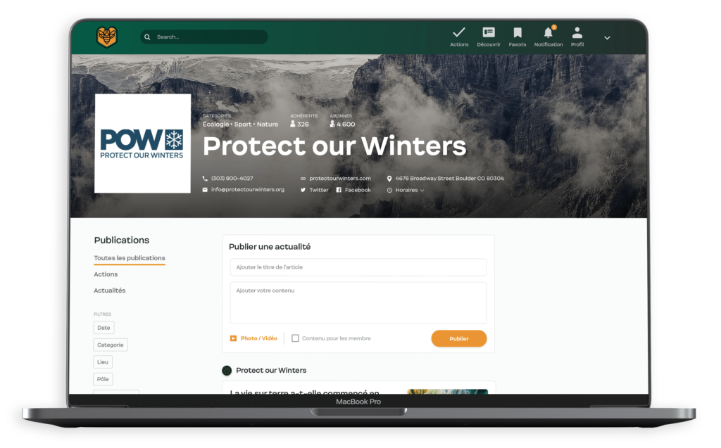 Créez de nouvelles actions bénévoles dans l’onglet « nos actions ».