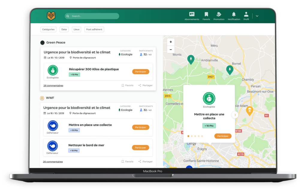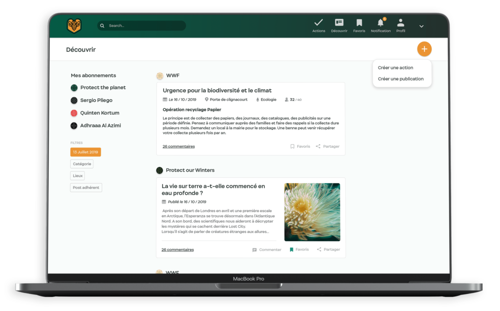 Aimez, commentez et partagez. Grâce à ces trois fonctionnalités, mettez certaines actions en favoris, entrez en contact avec les bénévoles et les associations et incitez vos amis à vous rejoindre.