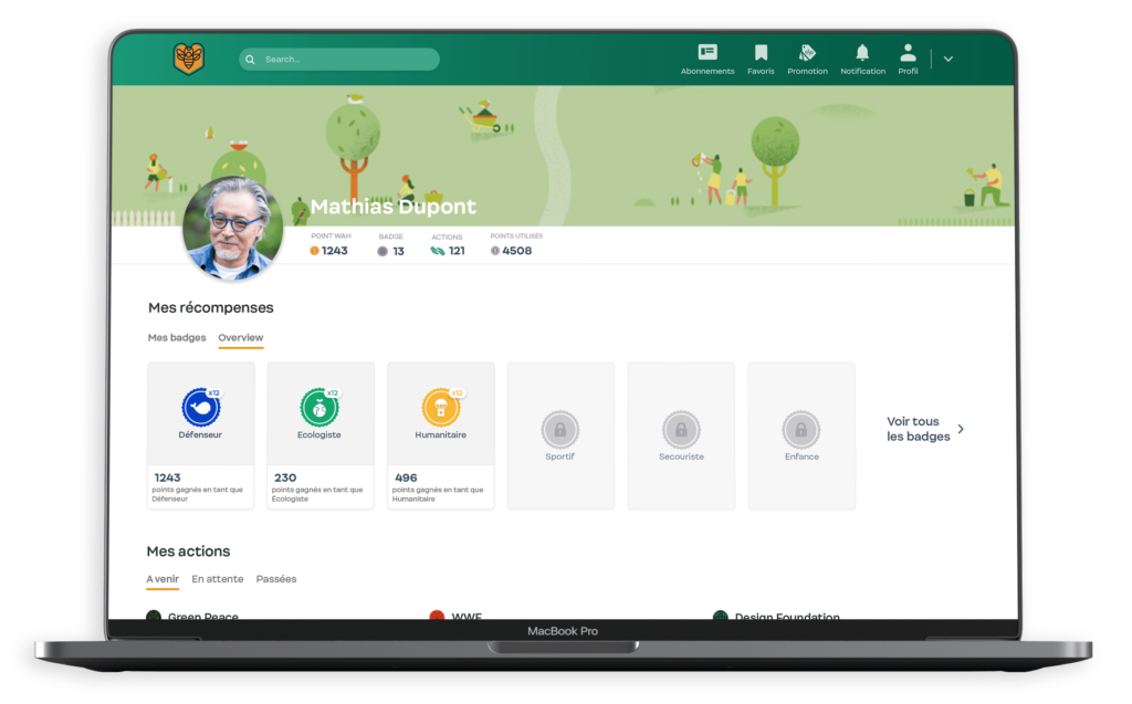 Une fois votre participation validée par l’association, vous recevez une récompense en WAH points directement sur votre profil.